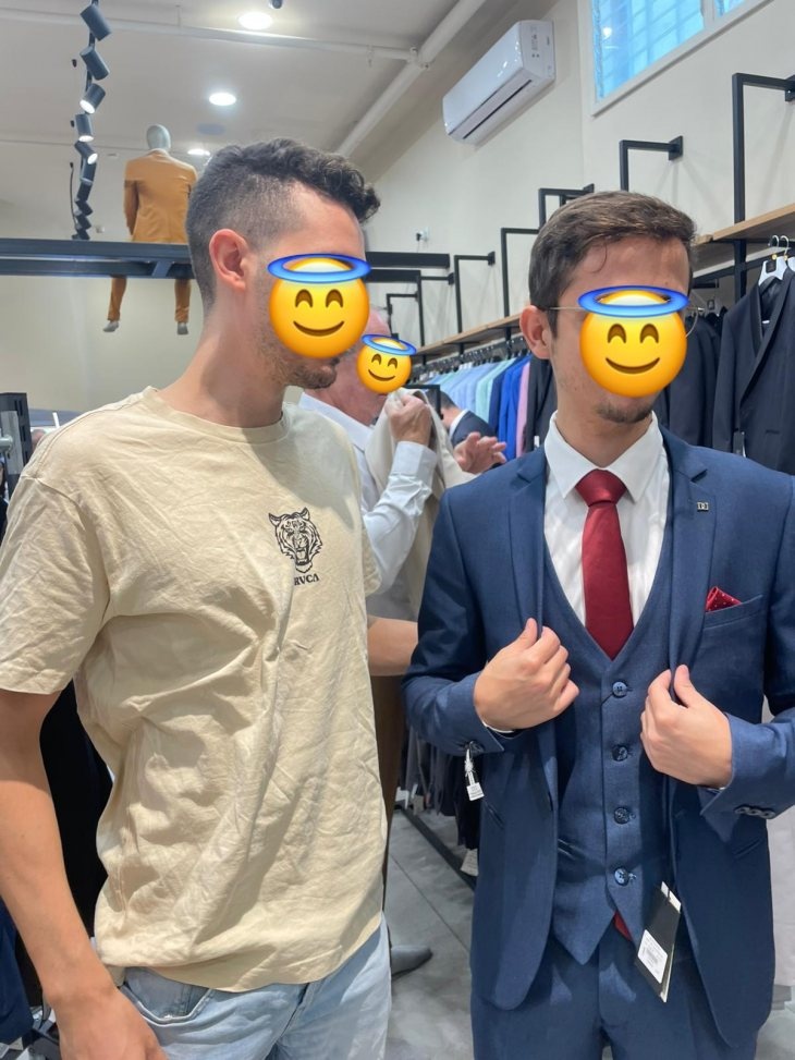 חווית השירות היתה גבוהה מאוד איך שנכנסנו לחנות: למרות העומס הצליחו לנהל את התור בצורה טובה. הציעו לנו מים ואספרסו. שירותים נקיים. הבחור שקיבל אותי למדידות, לצערי אני לא זוכר את שמו..., אבל היה מאוד נעים ושירותי, ידע את המידות שלי רק מלהסתכל עליי, מה שחסך הרבה זמן. התאים לחליפה את העניבה ונעליים ויצאתי מאוד מרוצה! החליפה באיכות וברמה גבוהה. קיבלתי מחמאות רבות ממשפחה וחברים במהלך האירוע.