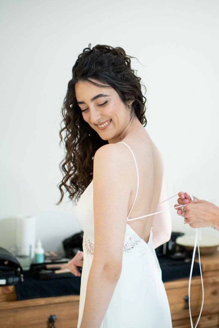 השמלה הייתה מוכנה ממש מהר, ישבה כמעט בול, ונדרשו רק פינישים קטנים. ביום החתונה היא הייתה נוחה בטירוף – נשארתי איתה כל הערב, רקדתי בכיף, זזתי בחופשיות והרגשתי הכי אני והכי קלילה.